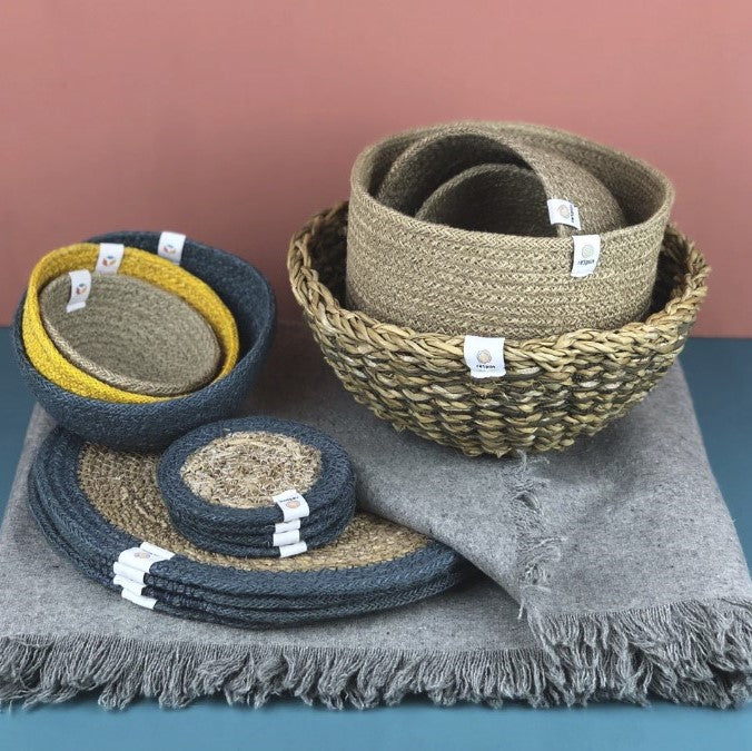 Since its launch in 2015 with recycled wool, the brand has developed its range to include beautiful bowls, baskets and tablewear produced from seagrass and jute. Its latest collection of beautiful baskets are hand woven with recyled saris.
