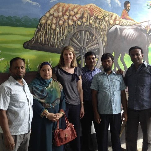 Founder Charity Nichols was scouting out new products in Germany when she discovered how recycled wool thread could be made with clothing from recycling banks. After finalising designs and colours, Charity visited her chosen manufacturers in India and Bangladesh.