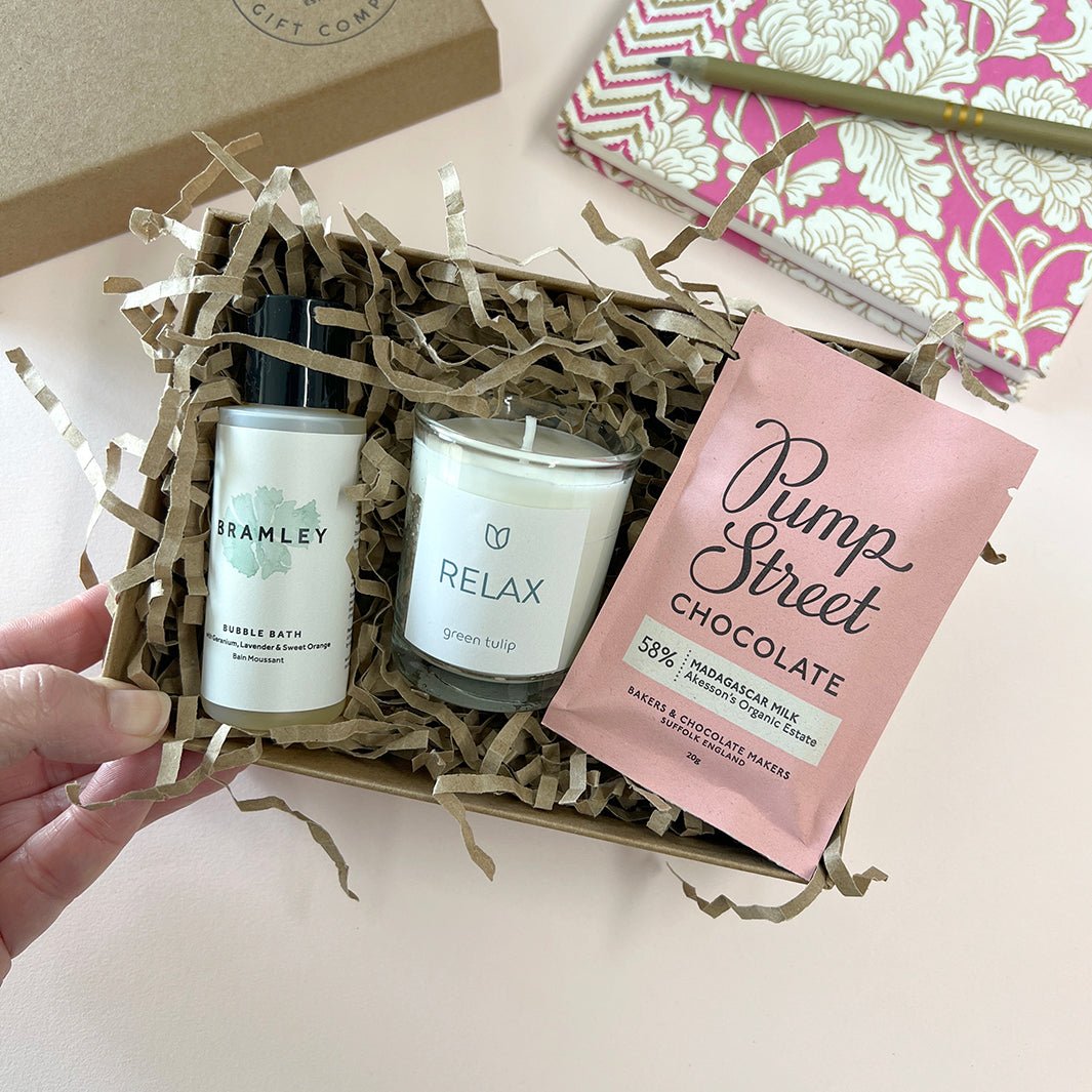 Beautifully packaged and ready for giving, this small box of indulging treats is perfect for saying 'take some time out for yourself'.