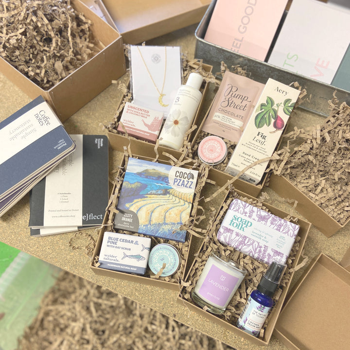 Ready-made gift setsPacked full of gorgeous natural & handmade products by small UK producers, our ready-made gift sets make a lovely thoughtful gift for colleagues and clients. With over 40 gift boxes to choose from and prices starting from just £15 per person, there's something here for everyone. These gift sets are packed and ready to send, so make the perfect gift if you're short on time. |