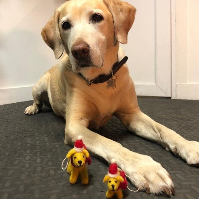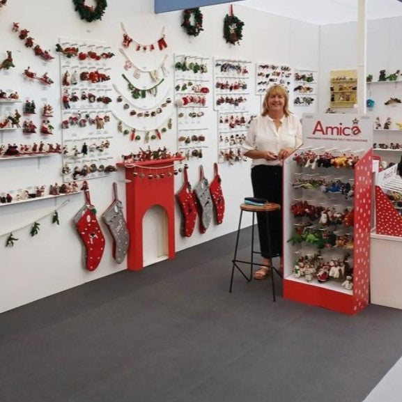 Today, Amica HQ in Bristol consists of a small team who are still as focused on creating fantastic new ideas as those early days - the crazier the better! Even Cara, the most gorgeous golden lab became the inspiration behind the Brand's yellow lab Christmas decorations, tree toppers, toys and keyrings - here she is looking extremely photogenic!