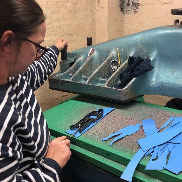 During April 2021 Ark moved from it's small premises in Cambridge to a 200 year old renovated barn based in a little rural village called Waterbeach, just north of Cambridge. Having more space, Ark had the room to house its very own cutting press enabling the all-female team to cut their very own leather and paper, something they were extremely excited about!