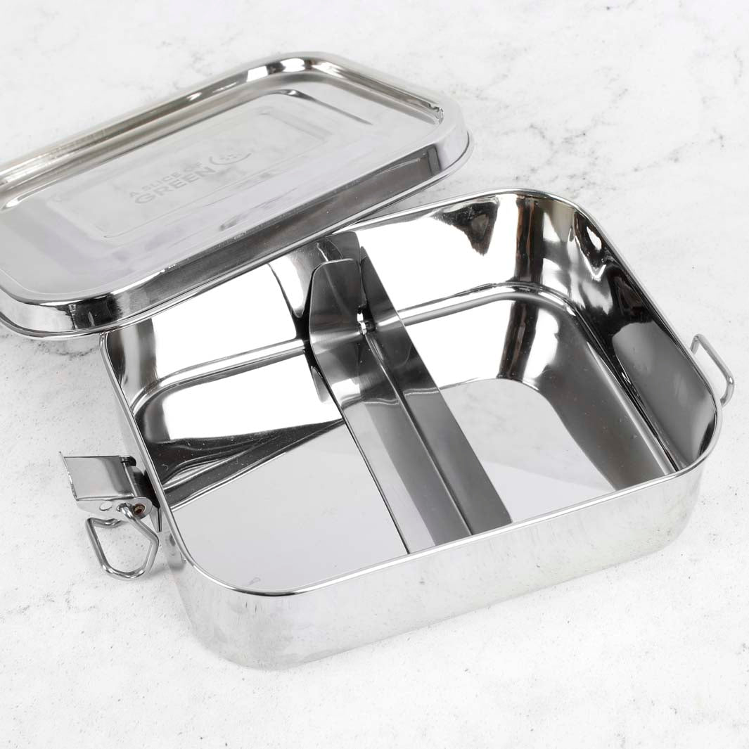 This stainless steel movable divider is great for separating different food types in your A Slice of Green Doda lunch box. The divider simply holds itself in place creating two compartments of whatever size you choose.
