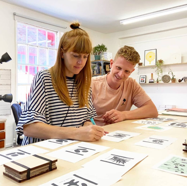 Husband and wife team Jakob Creswell-Rost and Freya Hawtin met while studying a degree in 3D design at Leeds. After graduating and gaining further qualifications in Fine Art and Graphic Design, the couple moved to Brighton and started up a business using their skills to produce design-led stationery and gifts with bold prints using techniques such as letterpress, risograph and lithography.