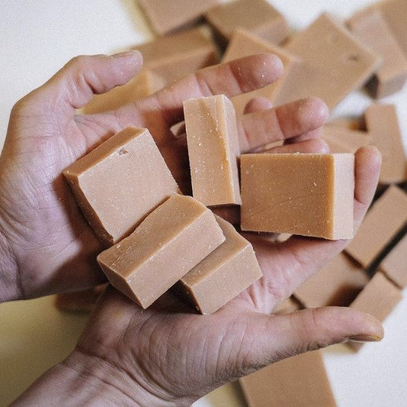At the end of each batch there's usually a few wonky bits and ends that don't quite make the cut, but nothing goes to waste! They make great travel or hand soaps and are perfect to put in a soap bag.